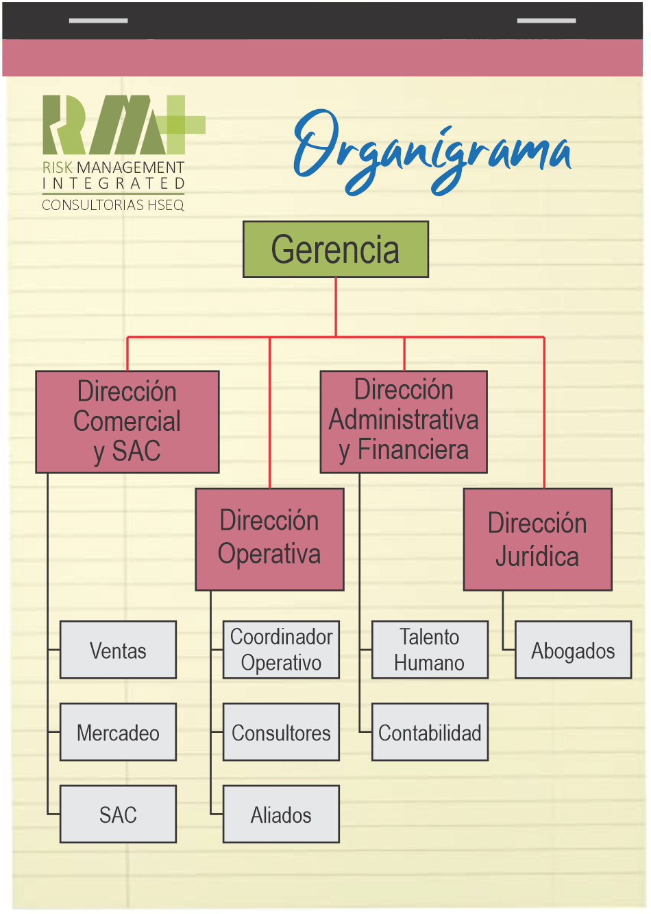 RISK MANAGEMENT INTEGRATED SAS es una organización especializada en servicios de consultoría, asesoría, procesos de formación y entrenamiento, asistencia técnica y diseño de estrategias para implementar de forma eficiente Sistemas de Gestión de Calidad, ISO 9000, 14000, 45001, RUC, SGSST entre otras normas.